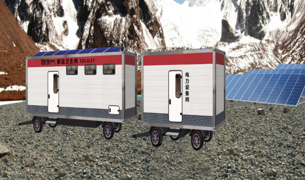 北京雨施捷公司為其量身定制了增加太陽能光伏發電系統的車載拖車式移動廁所。