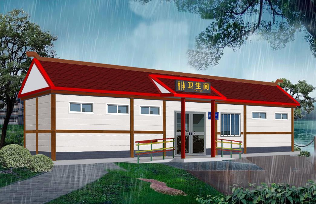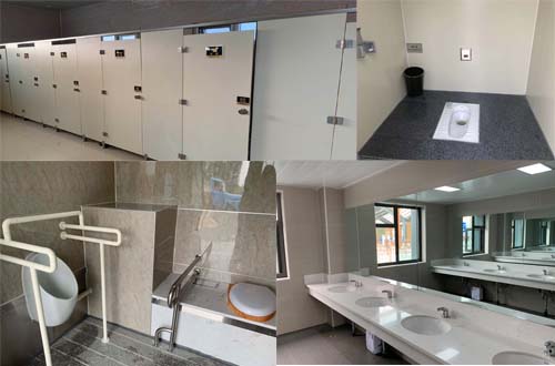 標準配置:不銹鋼蹲便器、防滑火燒板地面、化妝鏡、衣帽鉤、手紙盒、廢紙簍、照明燈、換氣扇、指示牌等.