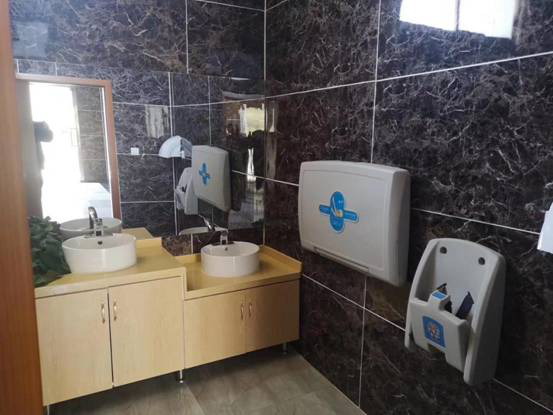 雨施捷的新型生態環保廁所內部設計以人性化、功能化設施為主,改通槽式廁位為密閉獨立廁位,設置獨立、密閉的廁位,充分保證了游客如廁環境的衛生、隱私,還有第三方衛生間,專門提供給兒童、帶孩子的母親以及殘障人士使用,以及擁有適合兒童使用的坐便器、洗手臺,還有照顧孩子的嬰兒護理臺、嬰兒座椅。洗手臺和廁所走廊放置了精致的大小不同的盆栽,給廁所的空氣添加了一縷清香。洗手液、烘手機這樣的基本設備也一應齊全,鋪設的咖色大理石瓷磚,顯得格外干凈。