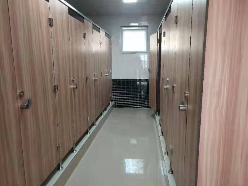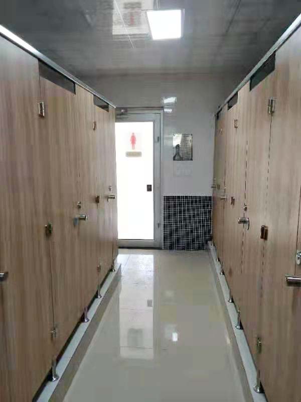 室內竹木纖維墻面到頂,地面鋪設防滑全瓷地磚,鋁方板天棚,外墻鋪設金屬雕花板具有保溫、隔音、防火的效果,采用自然通風換氣法,地板和墻低處都使用了瓷磚做裝飾材料。